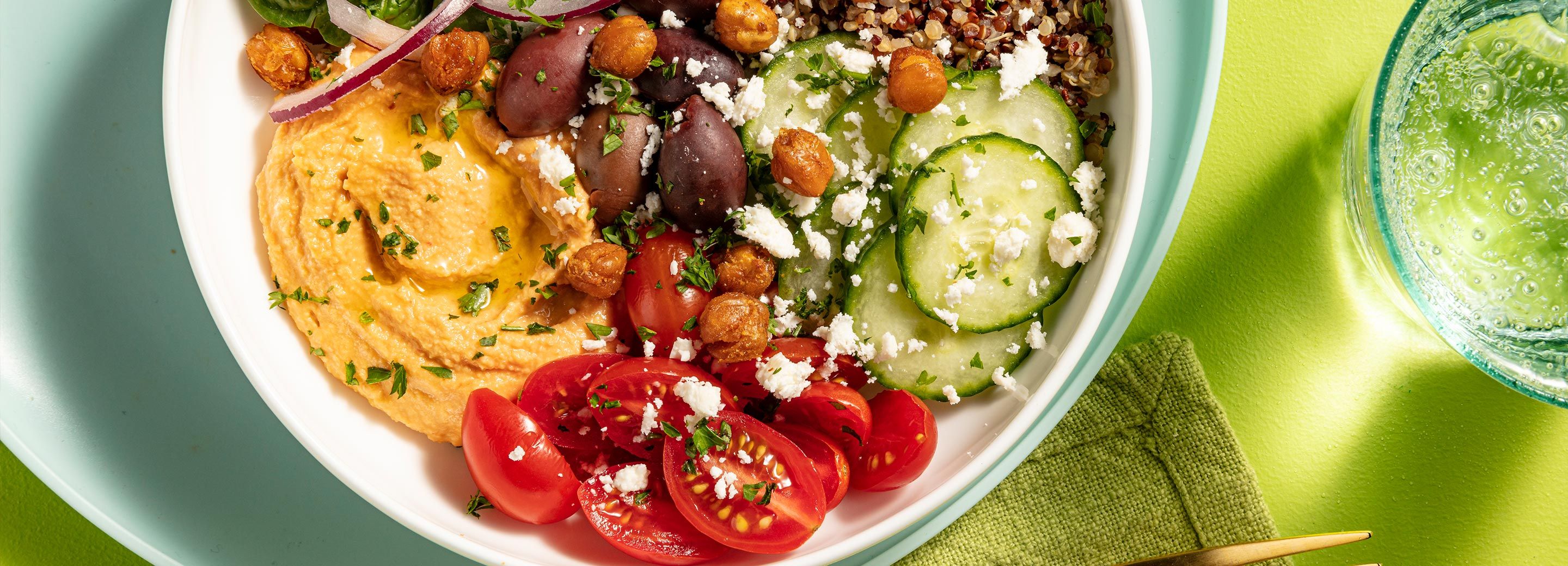 Mediterranean Hummus Bowl with Crispy Chickpeas & Feta
