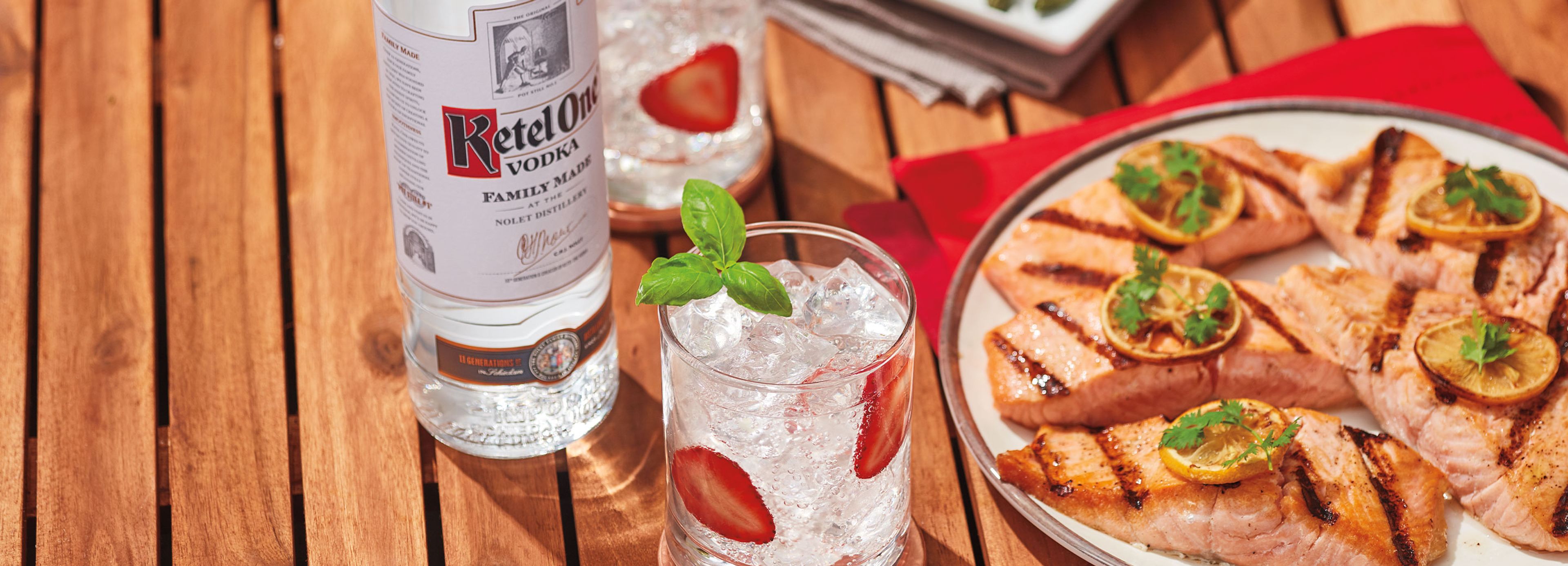 - Add Ketel One Vodka to an ice-filled glass.
