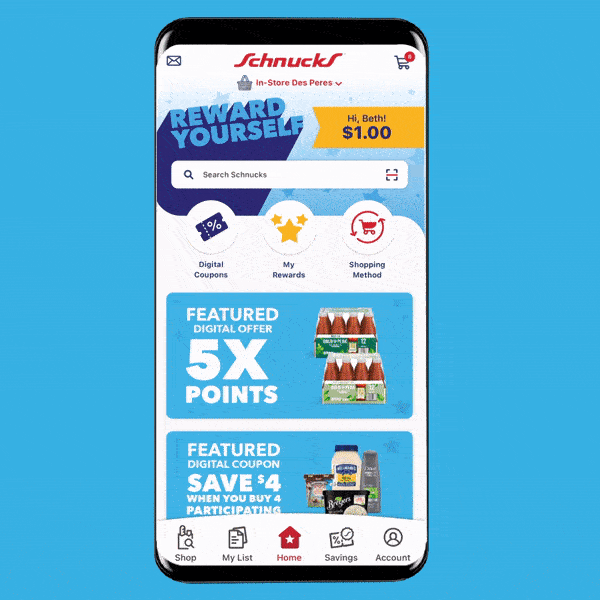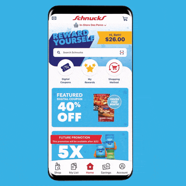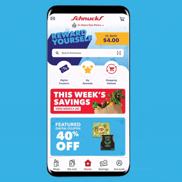 When you join Schnucks Rewards, you get access to exclusive savings in the Savings tab of the Schnucks Rewards app.